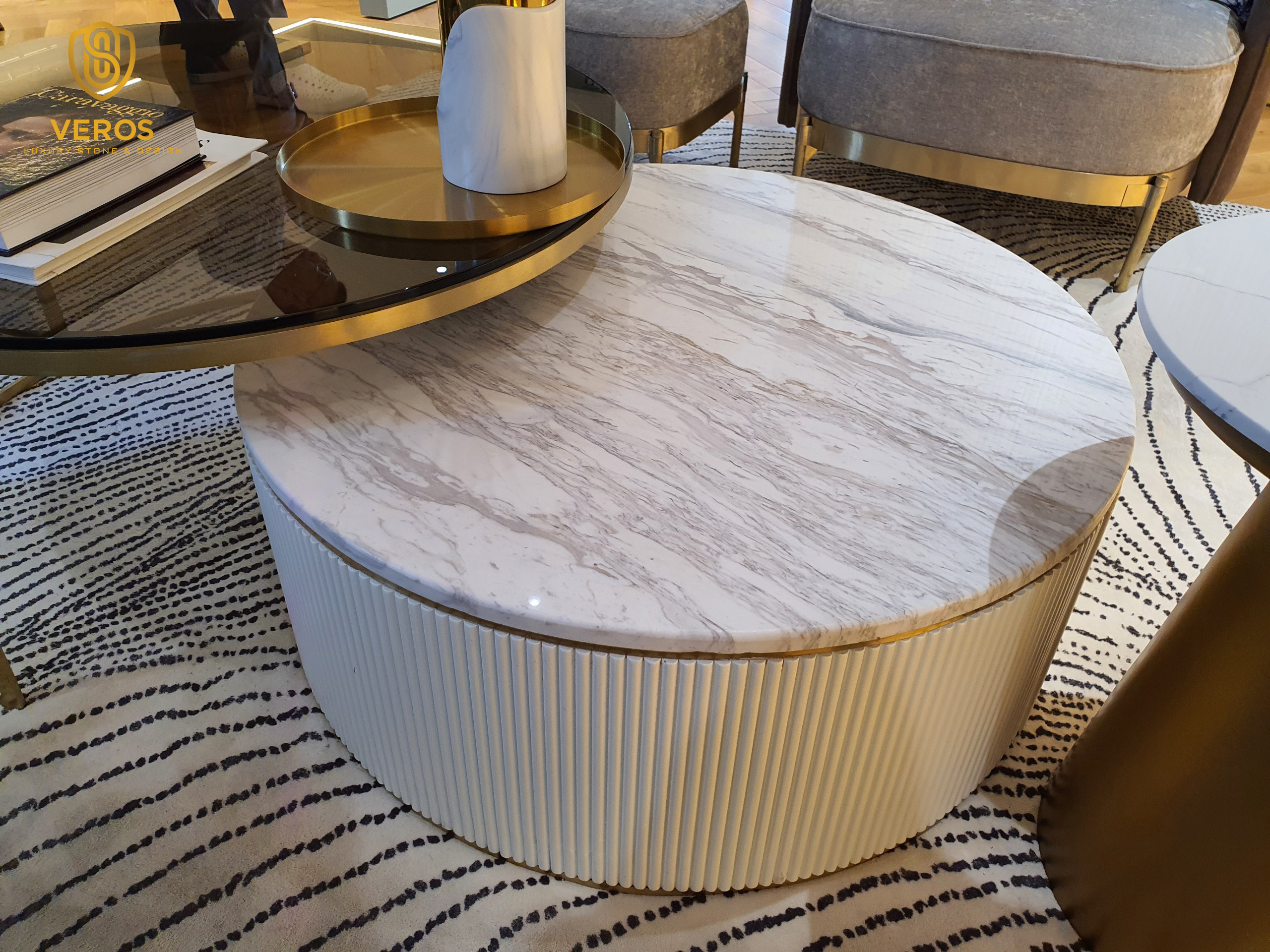 Đá có màu trắng sáng hòa với những đường vân mây màu xám, nâu nhẹ nhàng, uyển chuyển tạo nên một vẽ đẹp tự nhiên mê hồn không thể cưỡng lại được