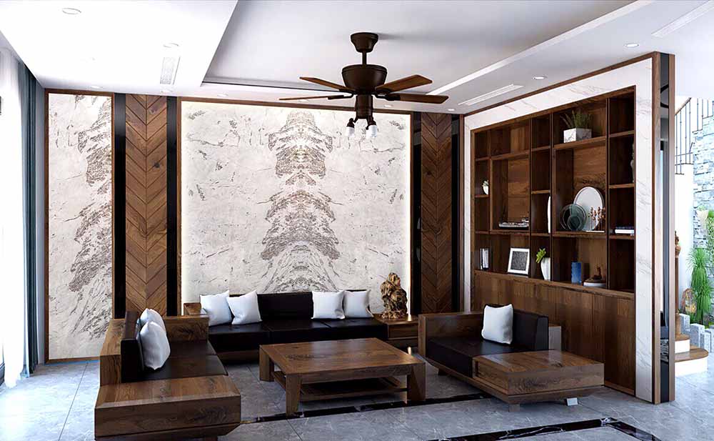 Alabaster White thường được sử dụng cho các hạng mục như tường, vách trang trí, cầu thang, mặt bàn, quầy bar,...
